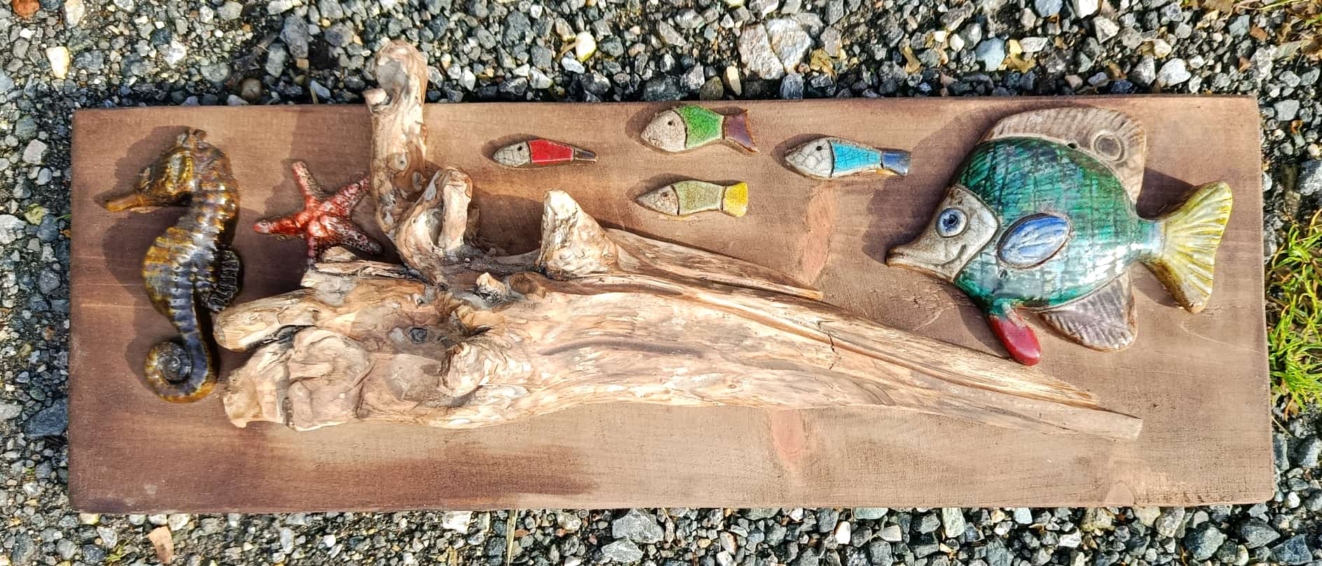 Due tipologie di Ceramica la Tecnica Raku’ in riduzione e la Ceramica Artistica in ossidazione si incontrano in uno stupendo fondale Marino.